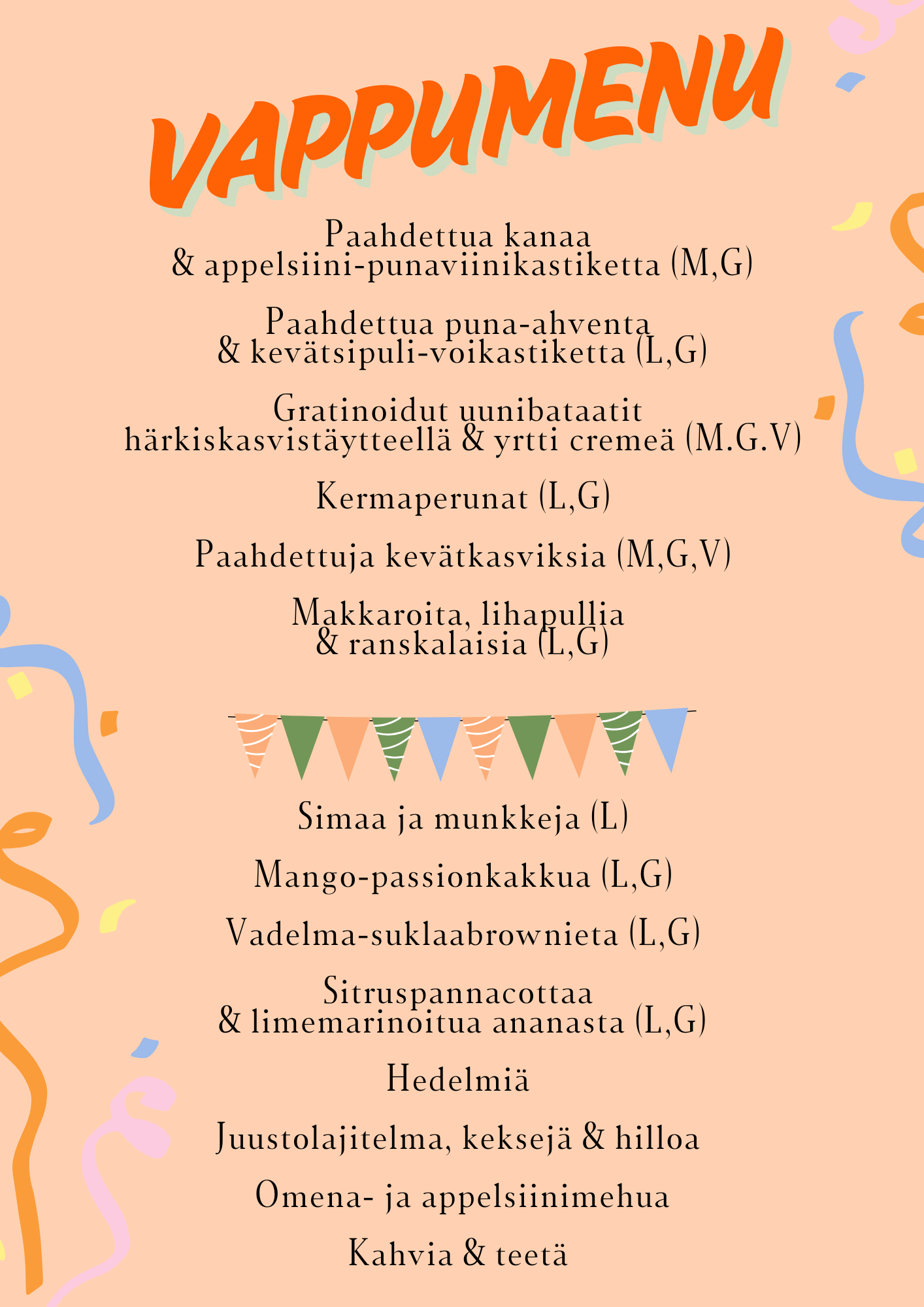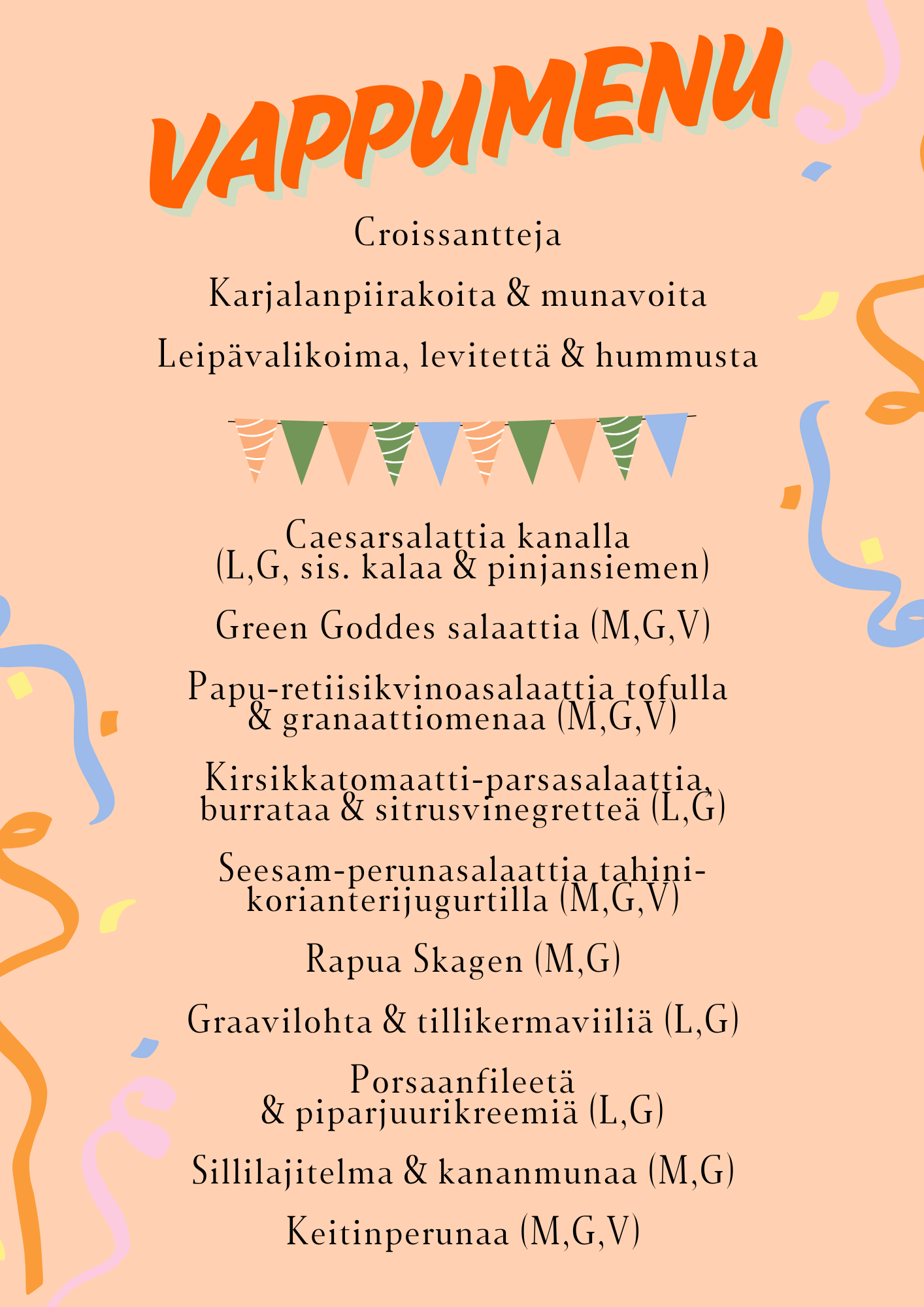 Järjestämme perjantaina 1.5.2026 poikkeuksellisesti vappubrunssin. Brunssin hinta on 40€/hlö, lapset alle 12v. 1€/ikävuosi.